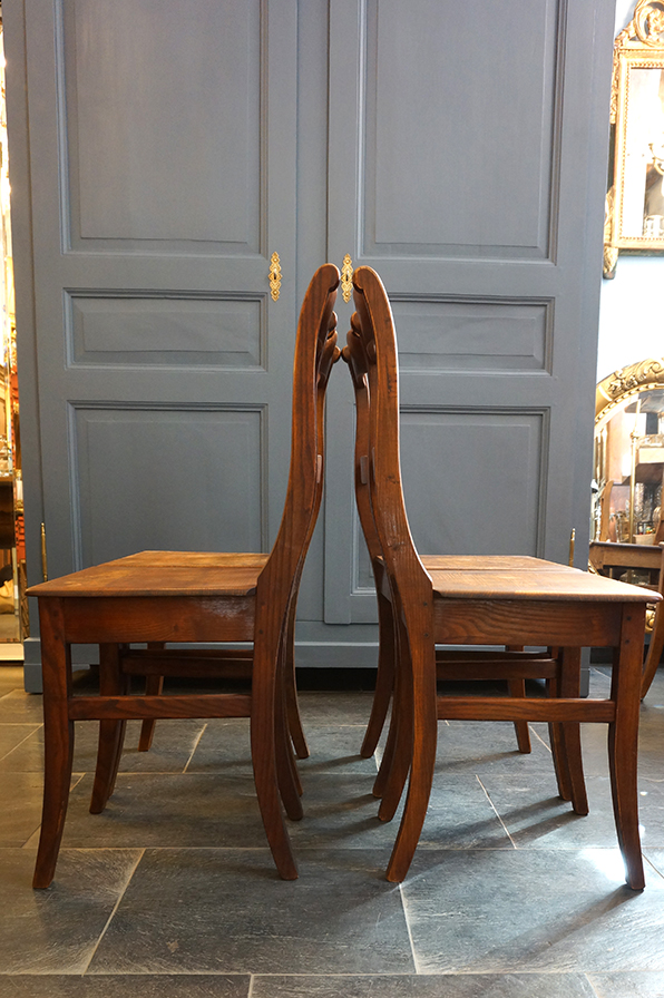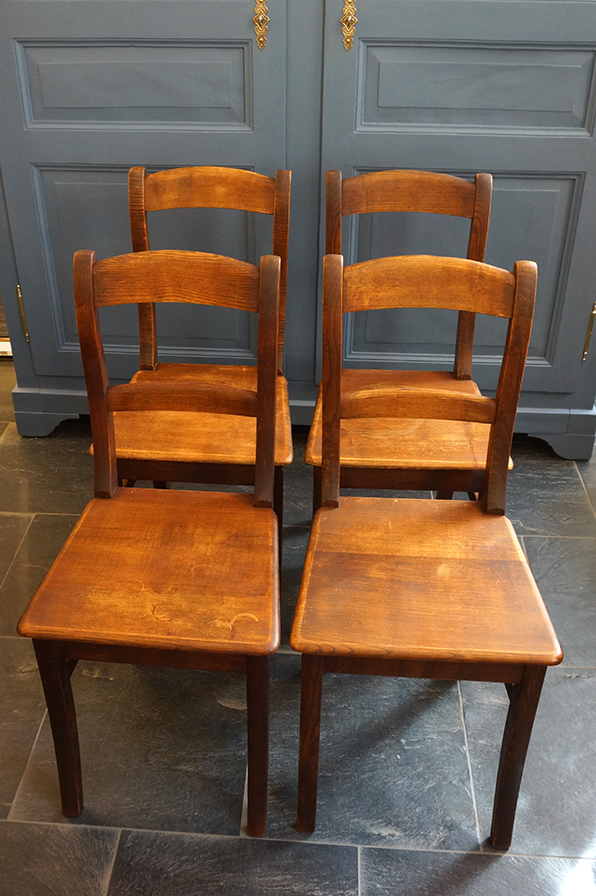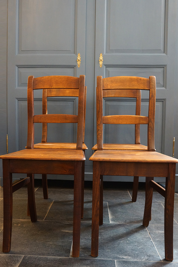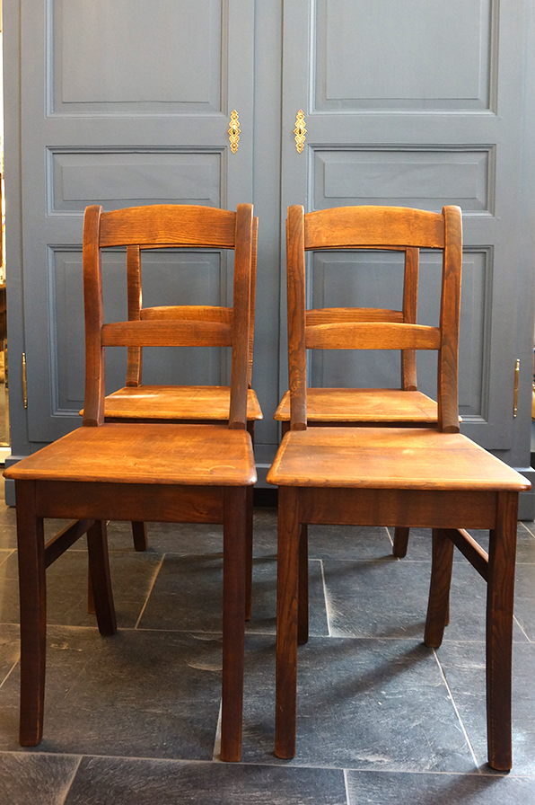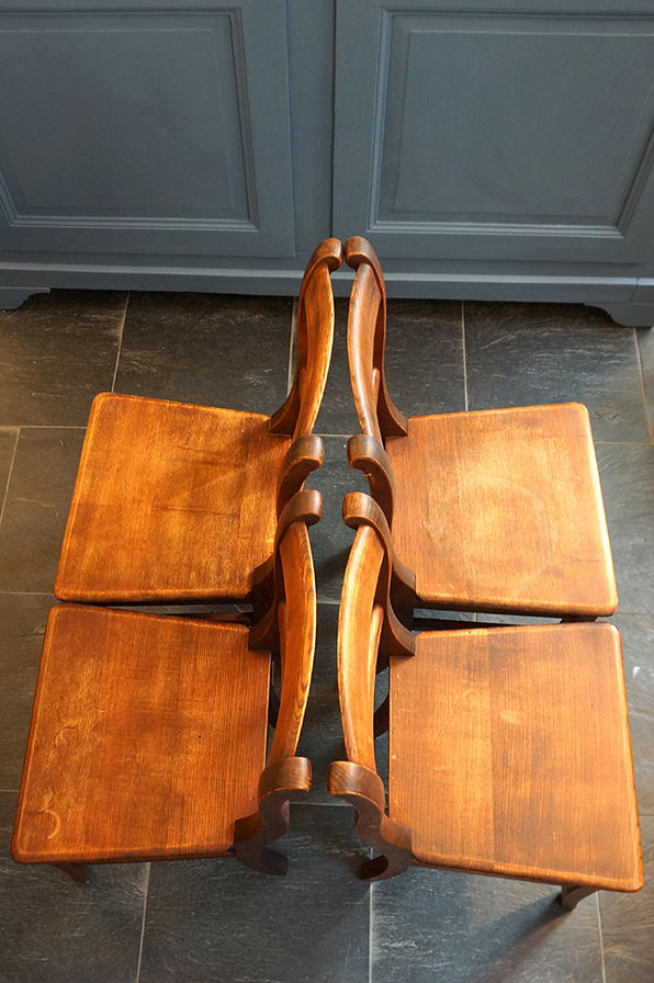 Die Stühle sind aus Kiefer, sehr stabil verarbeitet und mit einer universellen Schlichtheit versehen. Außerdem haben Sie eine echte schöne Patina. - Ein Alltagsstuhl. Es handelt sich um 4 Stück.