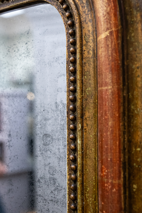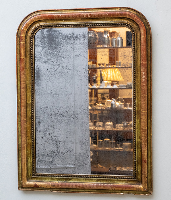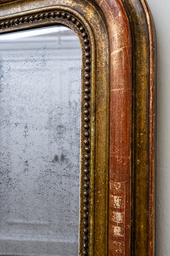 Ein originaler Louis Philippe Spiegel aus den Jahren um 1850/1860 aus Holz. Dieser charmante Wandspiegel besticht durch seinen vergoldeten, profilierten Rahmen und seine authentische Alterung. Die Patina auf der Spiegelfläche verleiht ihm eine besondere Ausstrahlung und macht ihn zu einem ausdrucksstarken Einzelstück mit Geschichte. Ideal als dekoratives Objekt in Kombination mit einer Konsole oder als stimmungsvolles Detail in klassischen, wie modernen Ambiente.